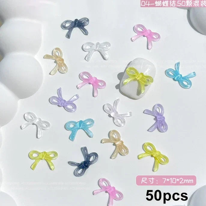French Ribbons Resin Bowknot Charms for Nail Art Enthusiasts