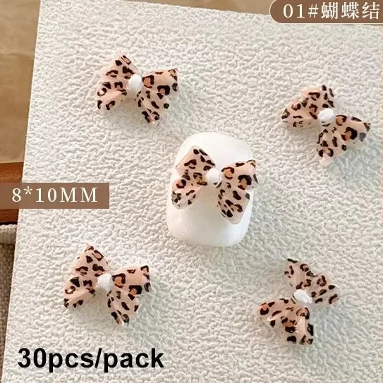 Elevate your nail art designs with these adorable French Ribbons Colorful Resin Bowknot Charms. Featuring a trendy leopard print and cute bow tie design, these decorations are perfect for manicure enthusiasts and nail art professionals alike!