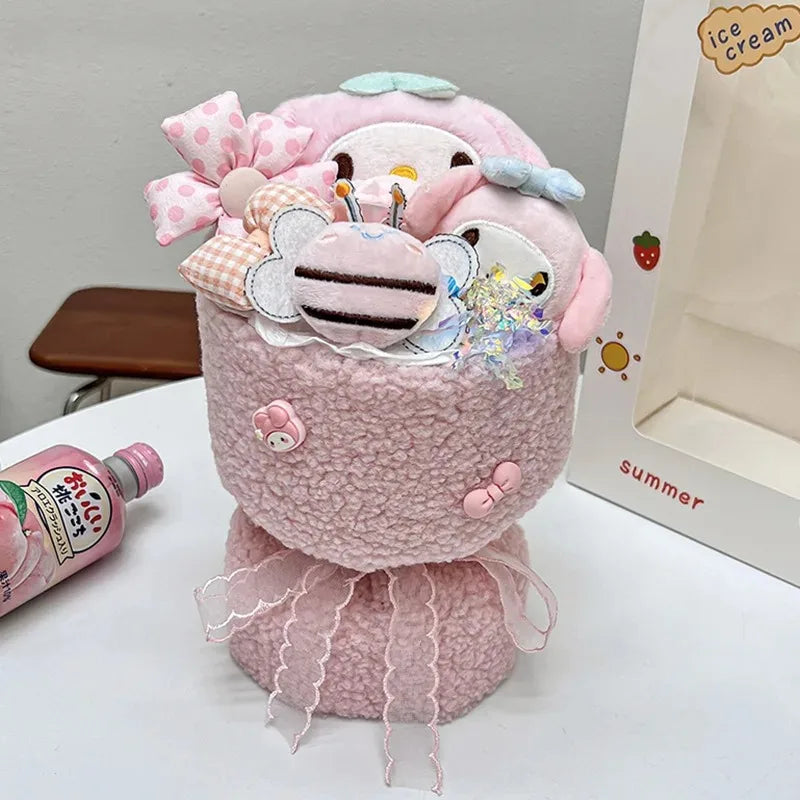 Delight in the charm of Sanrio with these Hello Kitty Bouquet plush dolls, featuring beloved characters like Cinnamoroll, Kuromi, and My Melody. Perfect for fans and collectors of all ages!